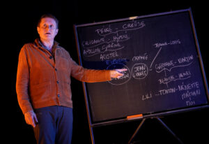 Sans que je fasse le lien tout d’abord, je me suis simultanément passionné pour les versions et réflexions autour du mythe d’Orphée. Et lorsque j’ai voulu relater l’histoire de ma découverte et toutes les recherches qu’elle avait entraînées, lorsque je me suis mis à écrire ce spectacle, il m’est rapidement apparu que je devais faire couture entre ce mythe et mon enquête, qu’il allait être la condition pour donner à cette dernière ses justes résonances.